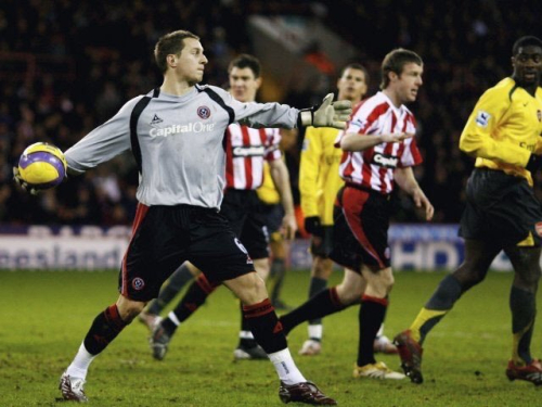 They played away to Sheffield United, who had to field a young defender, Phil Jagielka, in goal for more than 30 minutes due to injury to their goalkeeper, Paddy Kenny, 15 minutes into the second half.